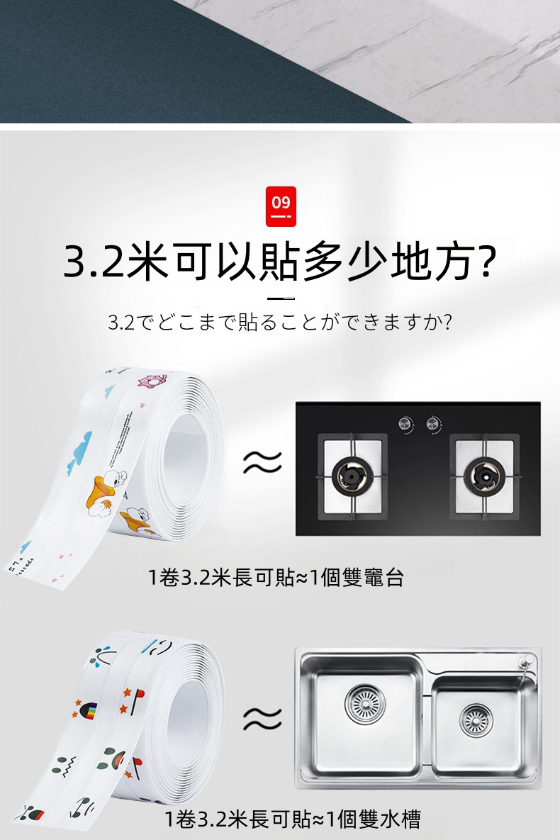 7分鐘前限時搶購 美縫貼防水防霉廚房水槽洗碗灶台封邊擋水條,衛生間馬桶邊緣縫隙貼 - 【嘗鮮價】3入組-NT$980